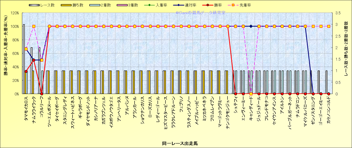 ライバル(相性)解析 同一レースに下記馬が出走した場合の成績とその馬に先着する先着率 |