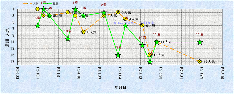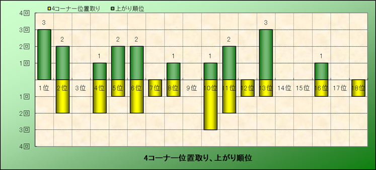 脚質解析 近20レースの4コーナーでの位置取りと上がり順位(頭数補正後) |