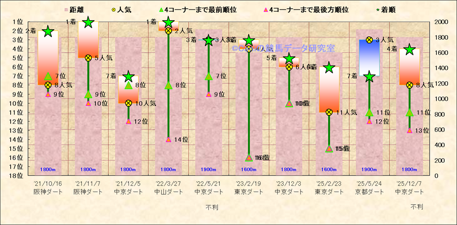 近10走 人気−着順-位置取りの推移 |