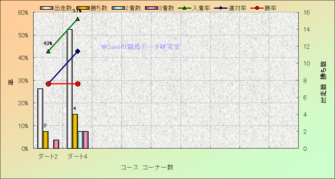 コース、コーナー数別成績(平地) |