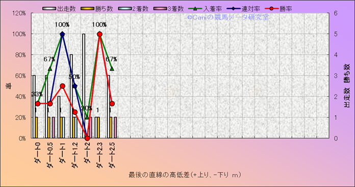 コース、最後の直線の高低差別成績(平地) |