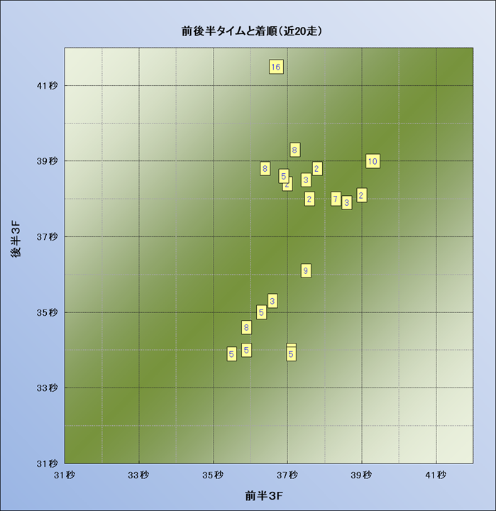 脚質解析 近20レースの4コーナーでの位置取りと上がり順位(頭数補正後) |