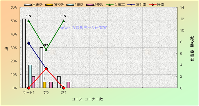 コース、コーナー数別成績(平地) |