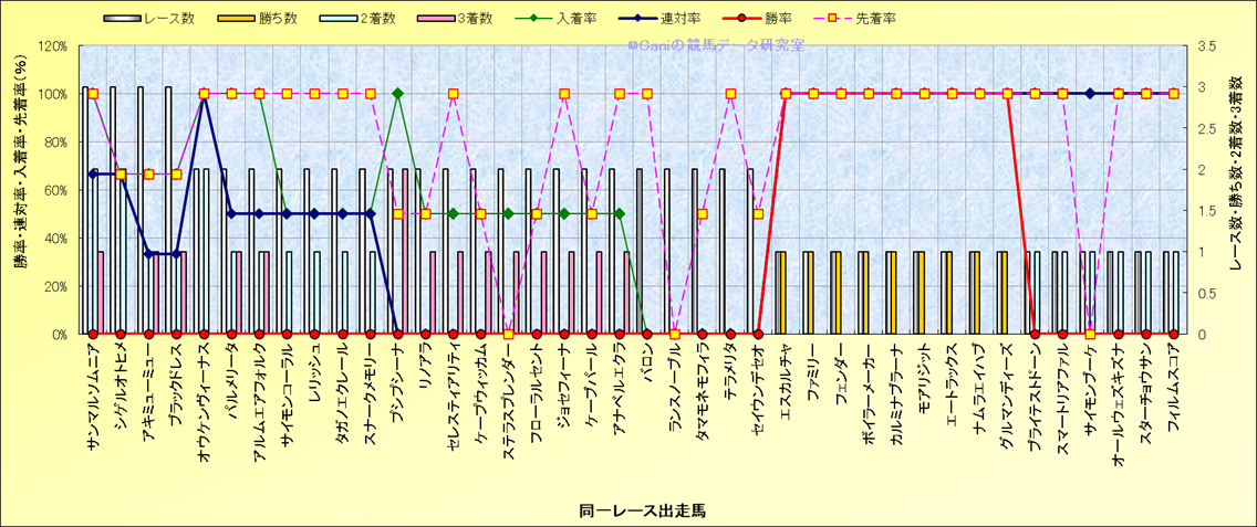 ライバル(相性)解析 同一レースに下記馬が出走した場合の成績とその馬に先着する先着率 |