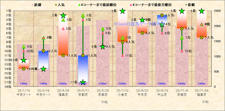近10走 人気−着順-位置取りの推移 |