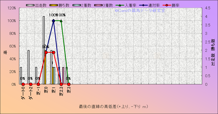 コース、最後の直線の高低差別成績(平地) |