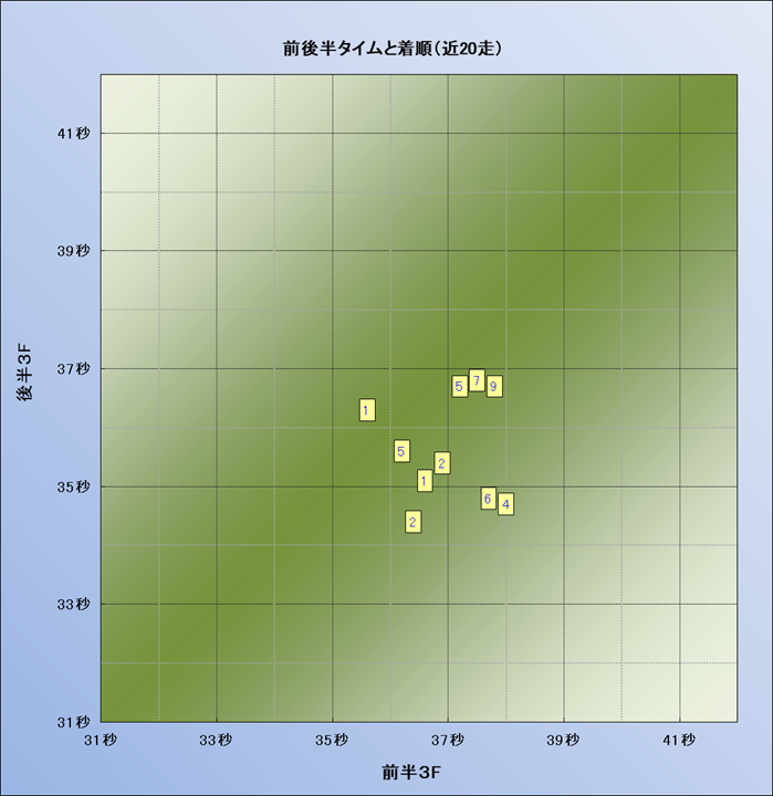 脚質解析 近20レースの4コーナーでの位置取りと上がり順位(頭数補正後) |