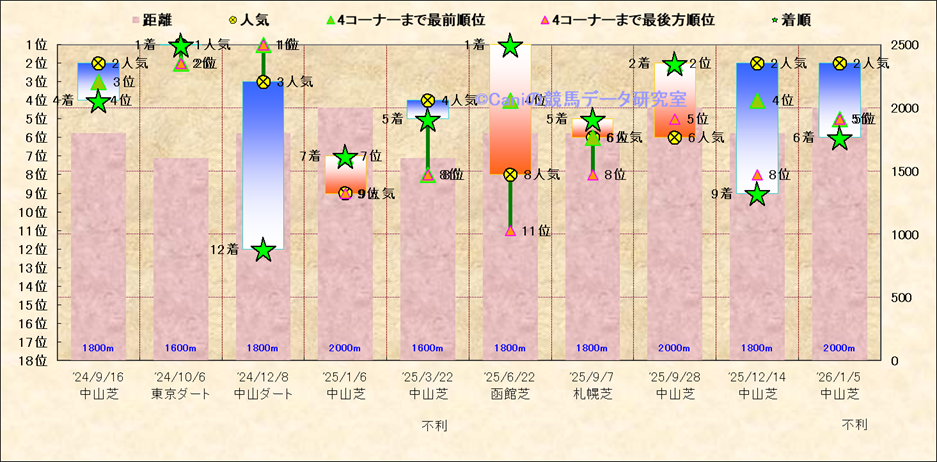 近10走 人気−着順-位置取りの推移 |