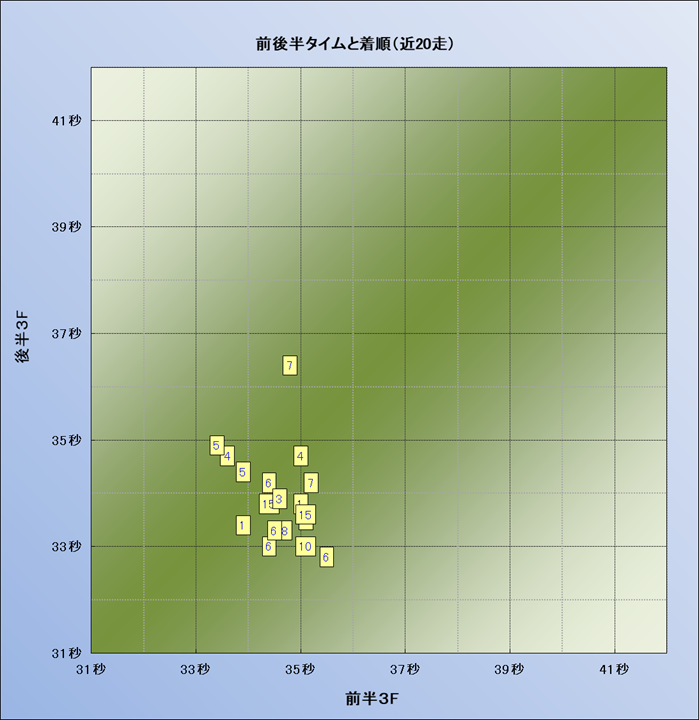 脚質解析 近20レースの4コーナーでの位置取りと上がり順位(頭数補正後) |