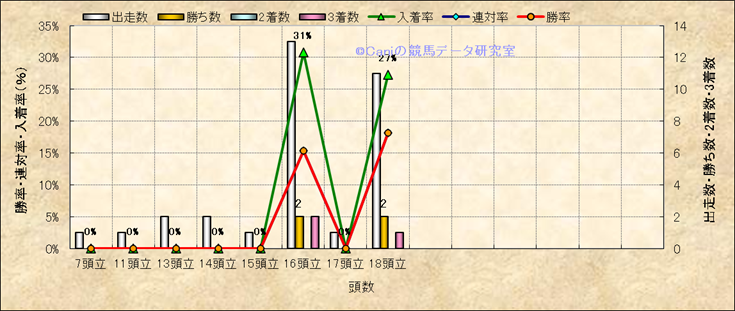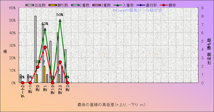 コース、最後の直線の高低差別成績(平地) |