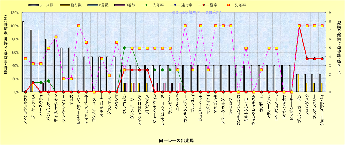 ライバル(相性)解析 同一レースに下記馬が出走した場合の成績とその馬に先着する先着率 |