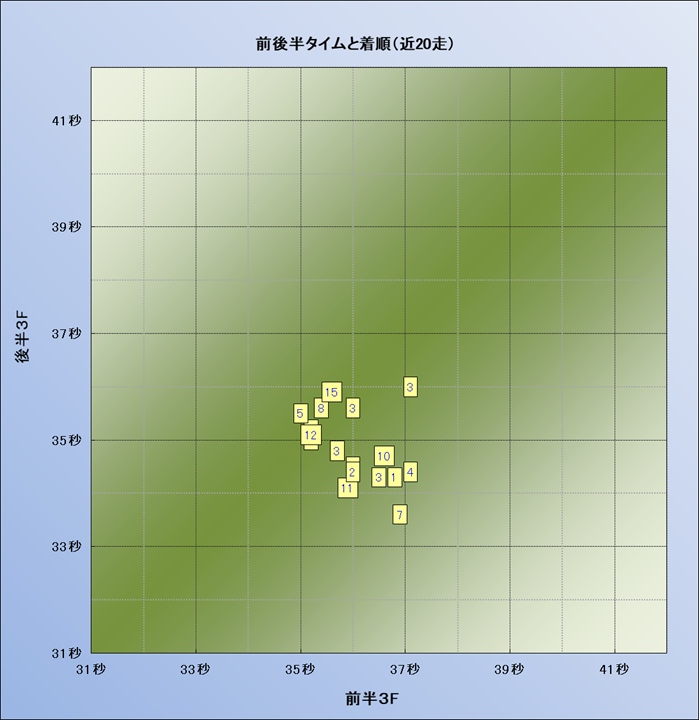 脚質解析 近20レースの4コーナーでの位置取りと上がり順位(頭数補正後) |