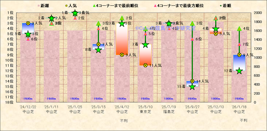 近10走 人気−着順-位置取りの推移 |