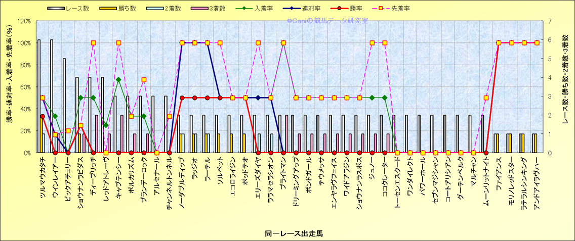 ライバル(相性)解析 同一レースに下記馬が出走した場合の成績とその馬に先着する先着率 |