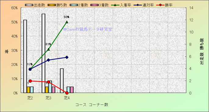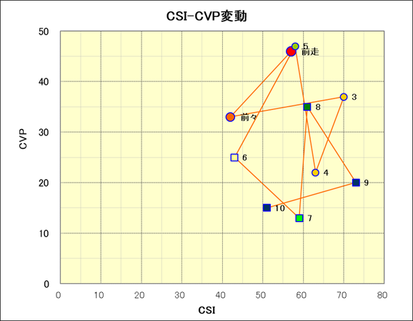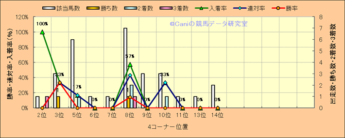 近走における4コーナーでの位置取りと上がり順位(頭数補正後) |