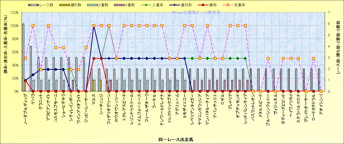 ライバル(相性)解析 同一レースに下記馬が出走した場合の成績とその馬に先着する先着率 |