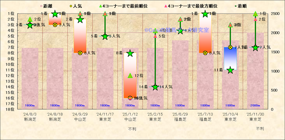 近10走 人気−着順-位置取りの推移 |
