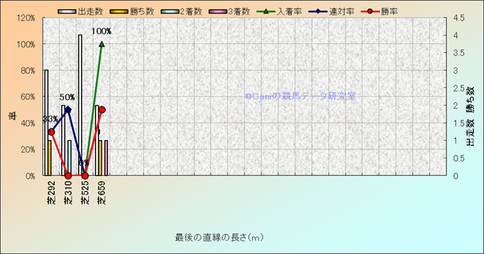 コース、最後の直線の長さ別成績(平地) |