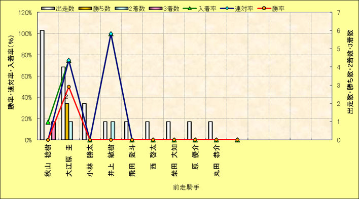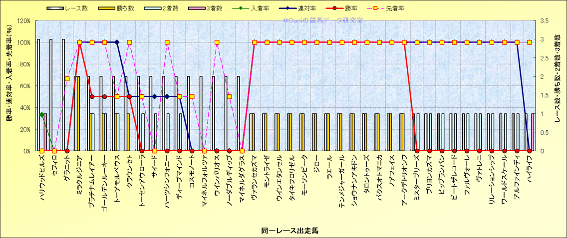 ライバル(相性)解析 同一レースに下記馬が出走した場合の成績とその馬に先着する先着率 |