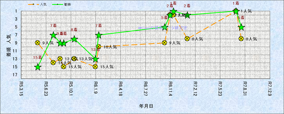 脚質解析 近20レースの4コーナーでの位置取りと上がり順位(頭数補正後) |