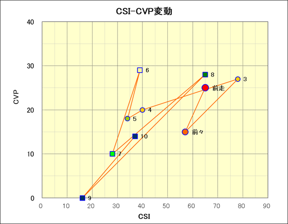 近走における4コーナーでの位置取りと上がり順位(頭数補正後) |