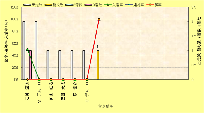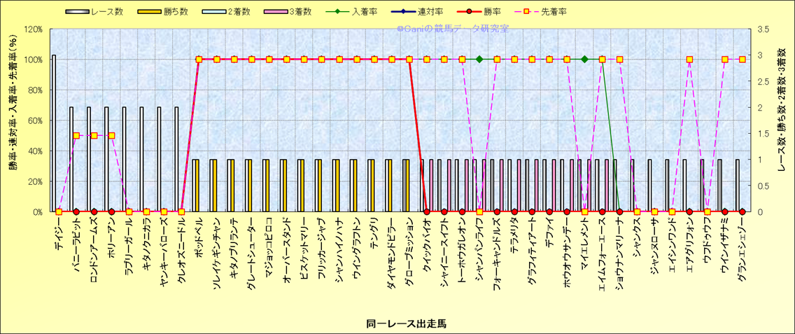 ライバル(相性)解析 同一レースに下記馬が出走した場合の成績とその馬に先着する先着率 |
