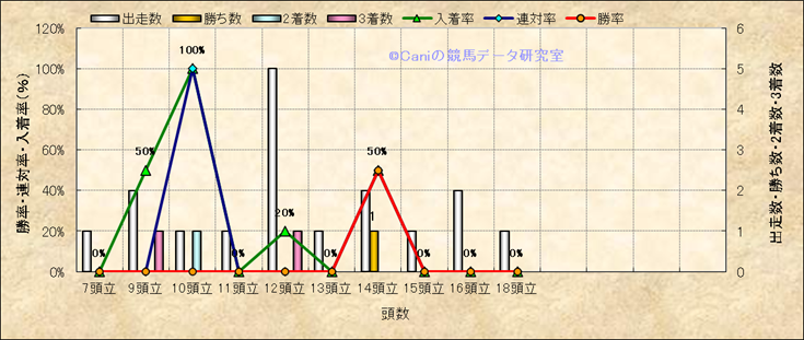 コース、最後の直線の高低差別成績(平地) |