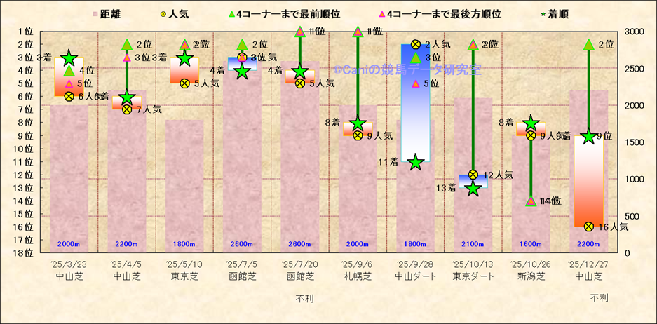 近10走 人気−着順-位置取りの推移 |