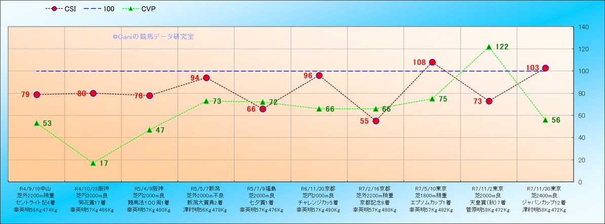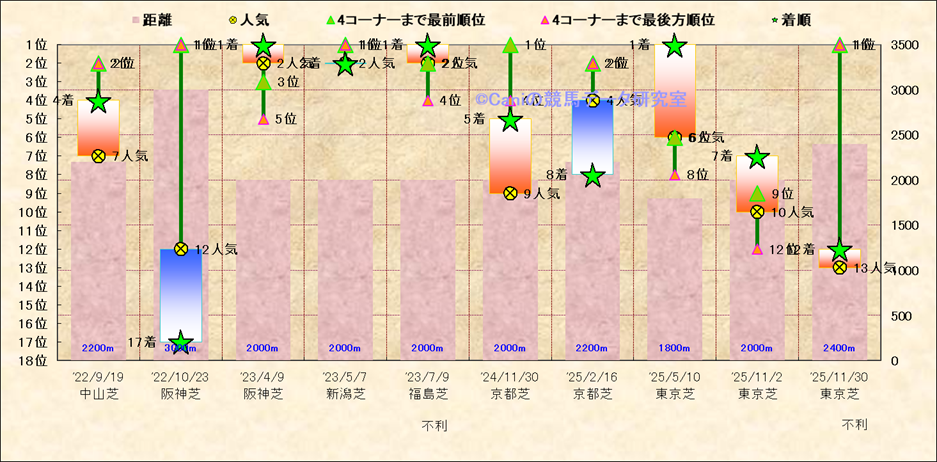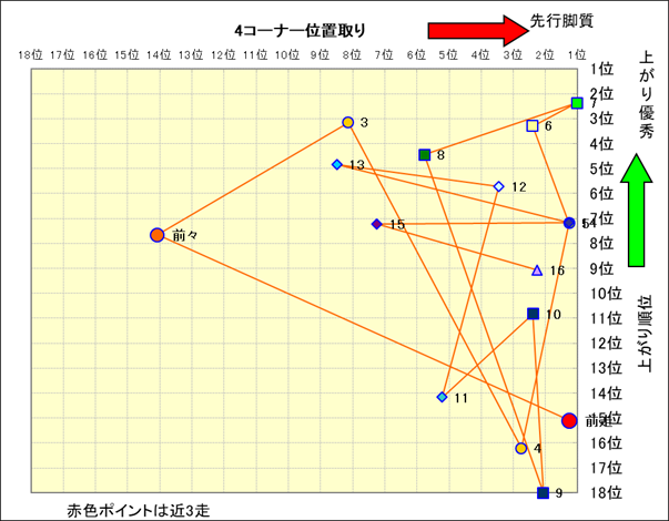 近走における4コーナーでの位置取りと上がり順位(頭数補正後) |