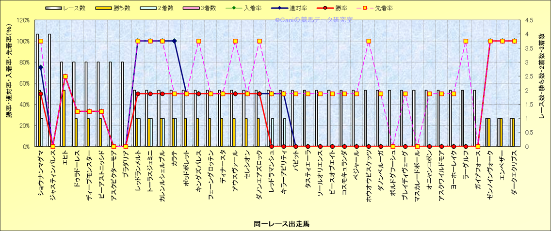 ライバル(相性)解析 同一レースに下記馬が出走した場合の成績とその馬に先着する先着率 |