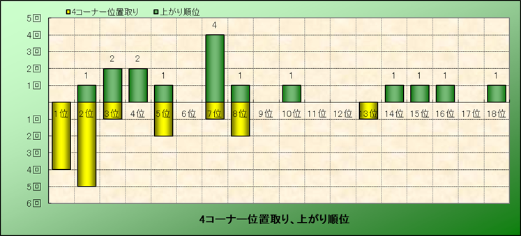 脚質解析 近20レースの4コーナーでの位置取りと上がり順位(頭数補正後) |