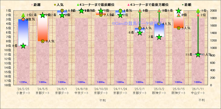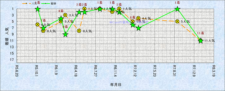 近10走 人気−着順-位置取りの推移 |