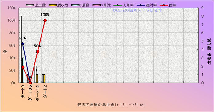 コース、最後の直線の高低差別成績(平地) |
