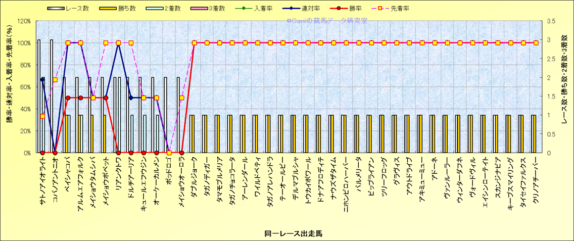 ライバル(相性)解析 同一レースに下記馬が出走した場合の成績とその馬に先着する先着率 |