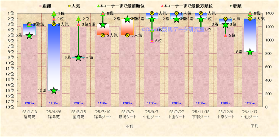 近10走 人気−着順-位置取りの推移 |
