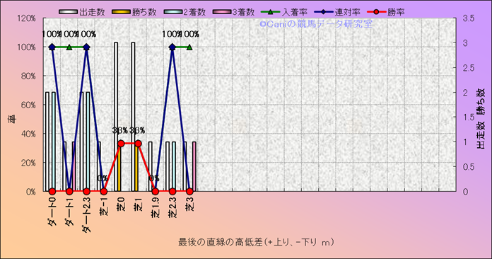 コース、最後の直線の高低差別成績(平地) |