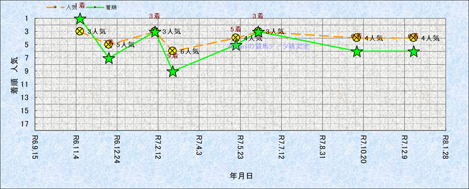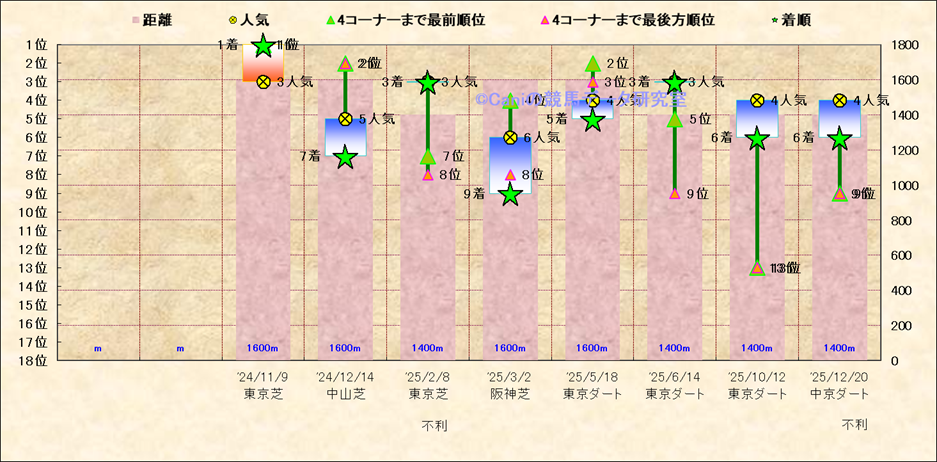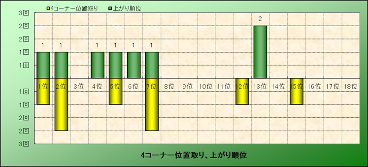 脚質解析 近20レースの4コーナーでの位置取りと上がり順位(頭数補正後) |