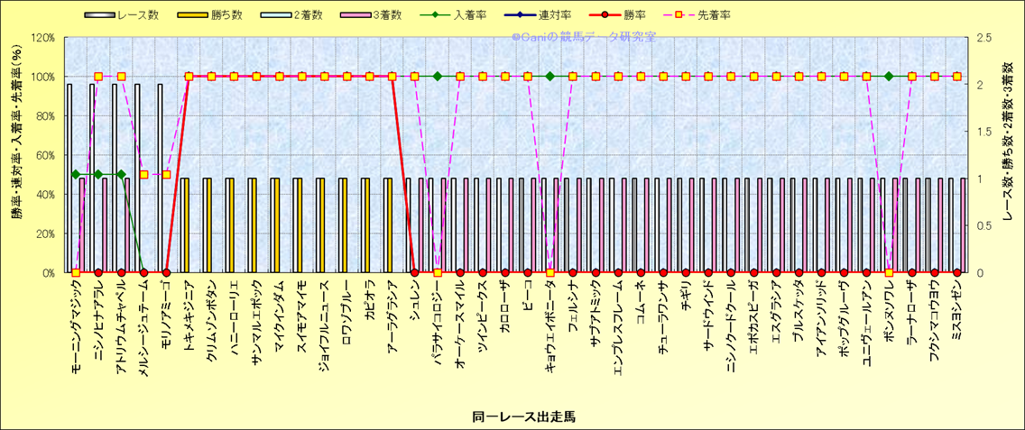 ライバル(相性)解析 同一レースに下記馬が出走した場合の成績とその馬に先着する先着率 |