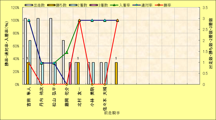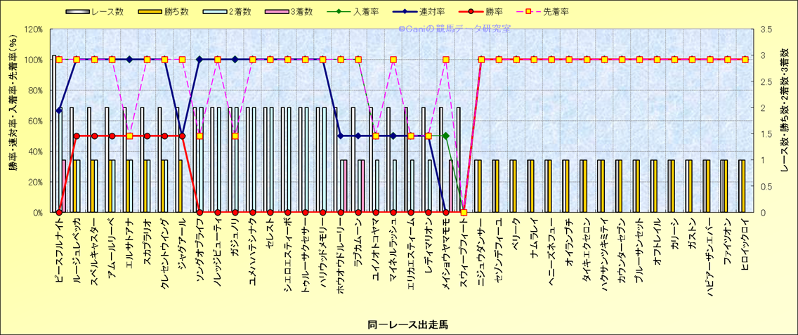 ライバル(相性)解析 同一レースに下記馬が出走した場合の成績とその馬に先着する先着率 |