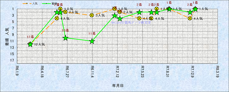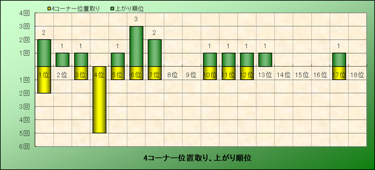 脚質解析 近20レースの4コーナーでの位置取りと上がり順位(頭数補正後) |