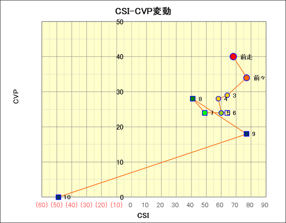 近走における4コーナーでの位置取りと上がり順位(頭数補正後) |