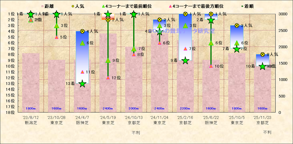 近10走 人気−着順-位置取りの推移 |