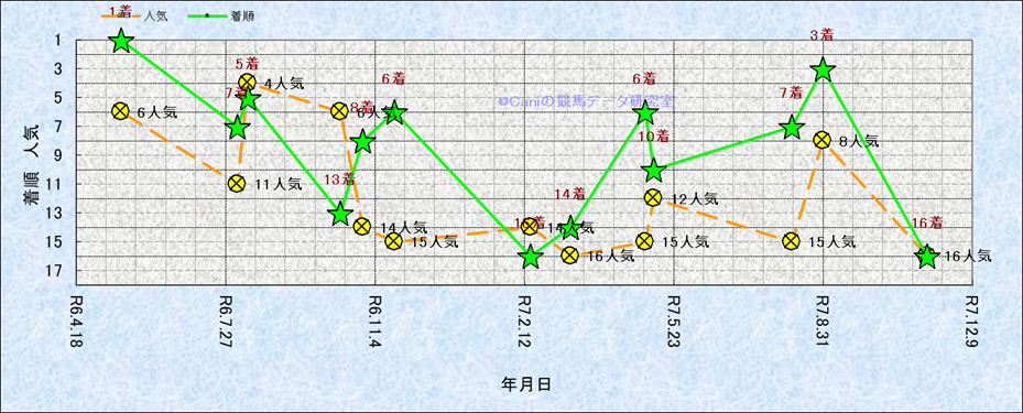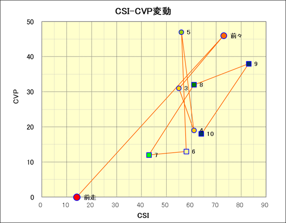 近走における4コーナーでの位置取りと上がり順位(頭数補正後) |