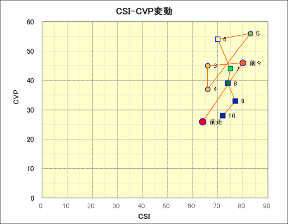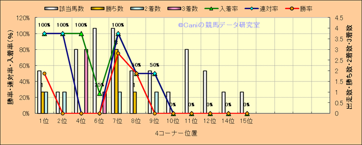近走における4コーナーでの位置取りと上がり順位(頭数補正後) |
