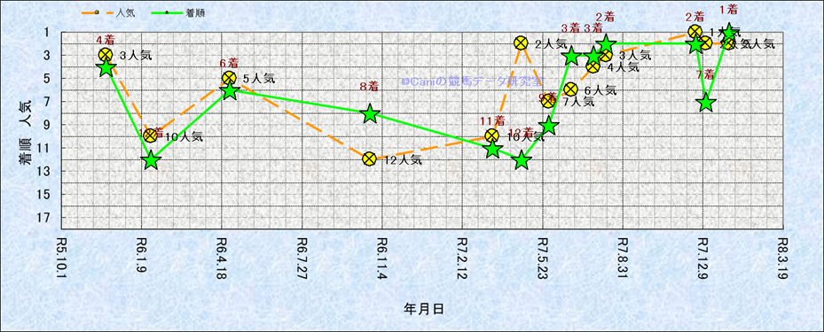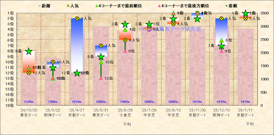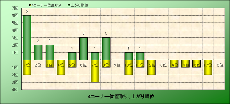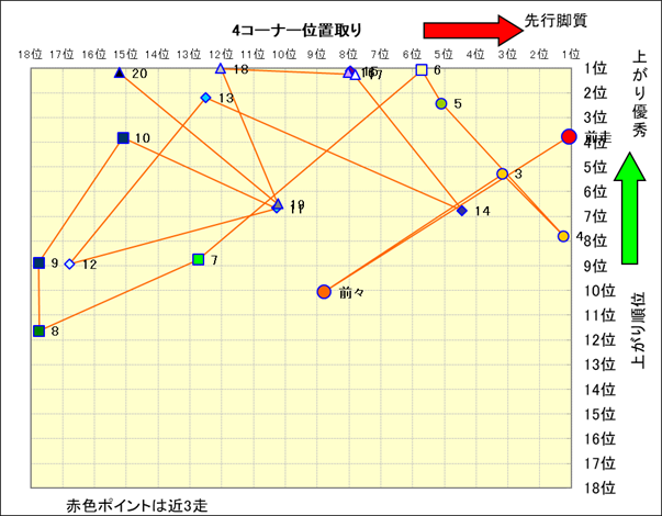 脚質解析 近20レースの4コーナーでの位置取りと上がり順位(頭数補正後) |