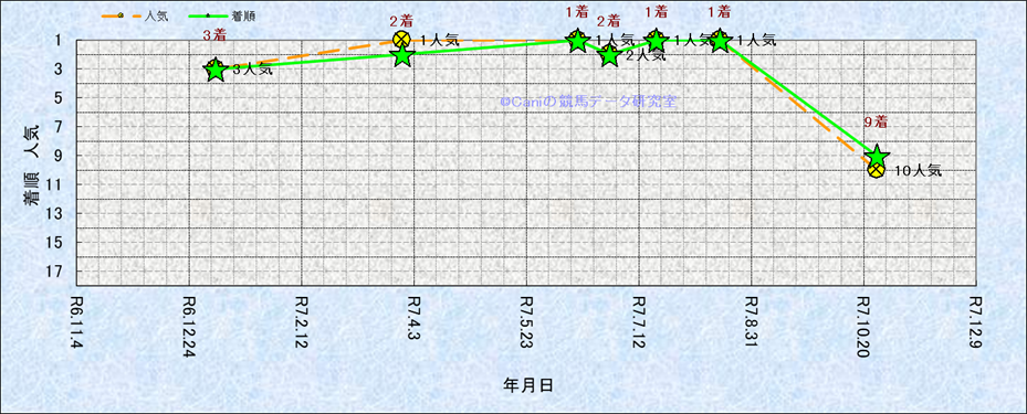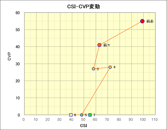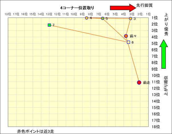近走における4コーナーでの位置取りと上がり順位(頭数補正後) |