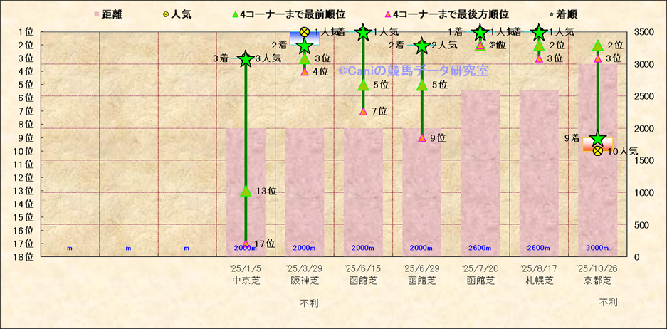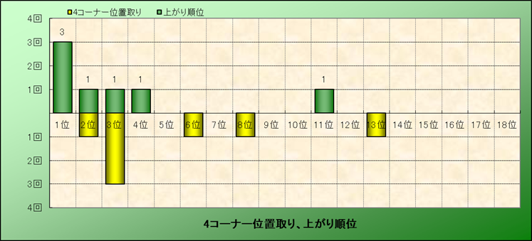 脚質解析 近20レースの4コーナーでの位置取りと上がり順位(頭数補正後) |