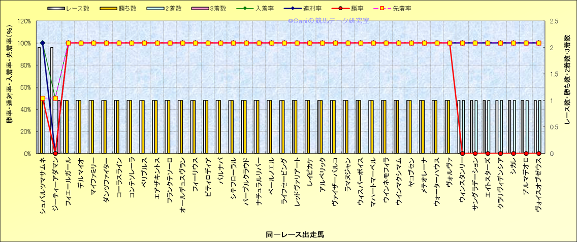 ライバル(相性)解析 同一レースに下記馬が出走した場合の成績とその馬に先着する先着率 |
