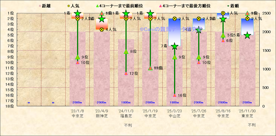 近10走 人気−着順-位置取りの推移 |