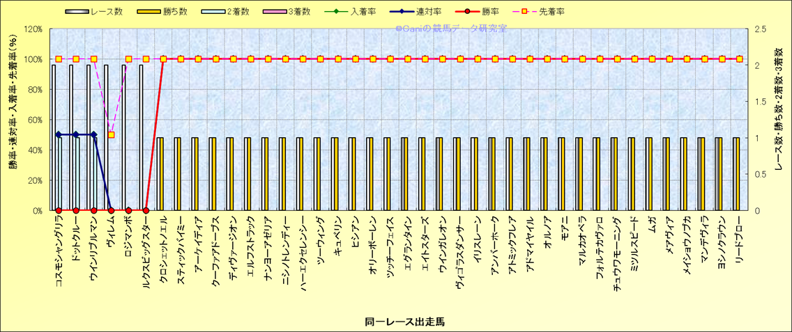 ライバル(相性)解析 同一レースに下記馬が出走した場合の成績とその馬に先着する先着率 |